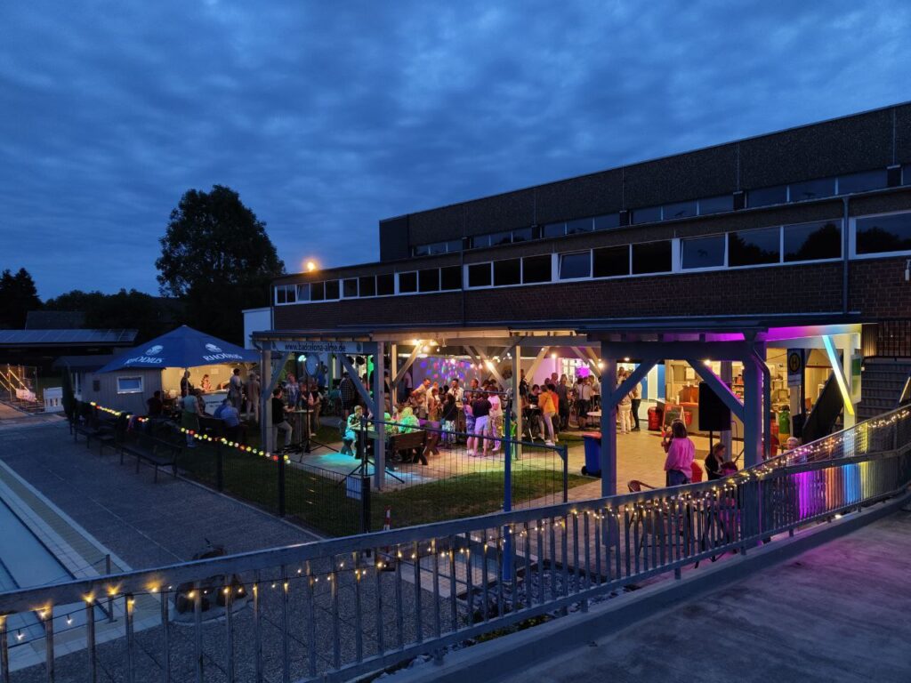 Das Freibad erstrahlte in stimmungsvoller Beleuchtung mit bunten Farben, während die Lichterketten eine gemütliche Atmosphäre zauberten.